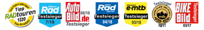 i serijos dviračių laikikliai jau 7 kartus yra tapę testų nugalėtojais, be kita ko, i31 laimėjo ADAC testą (2019 m. birželio mėn.)!